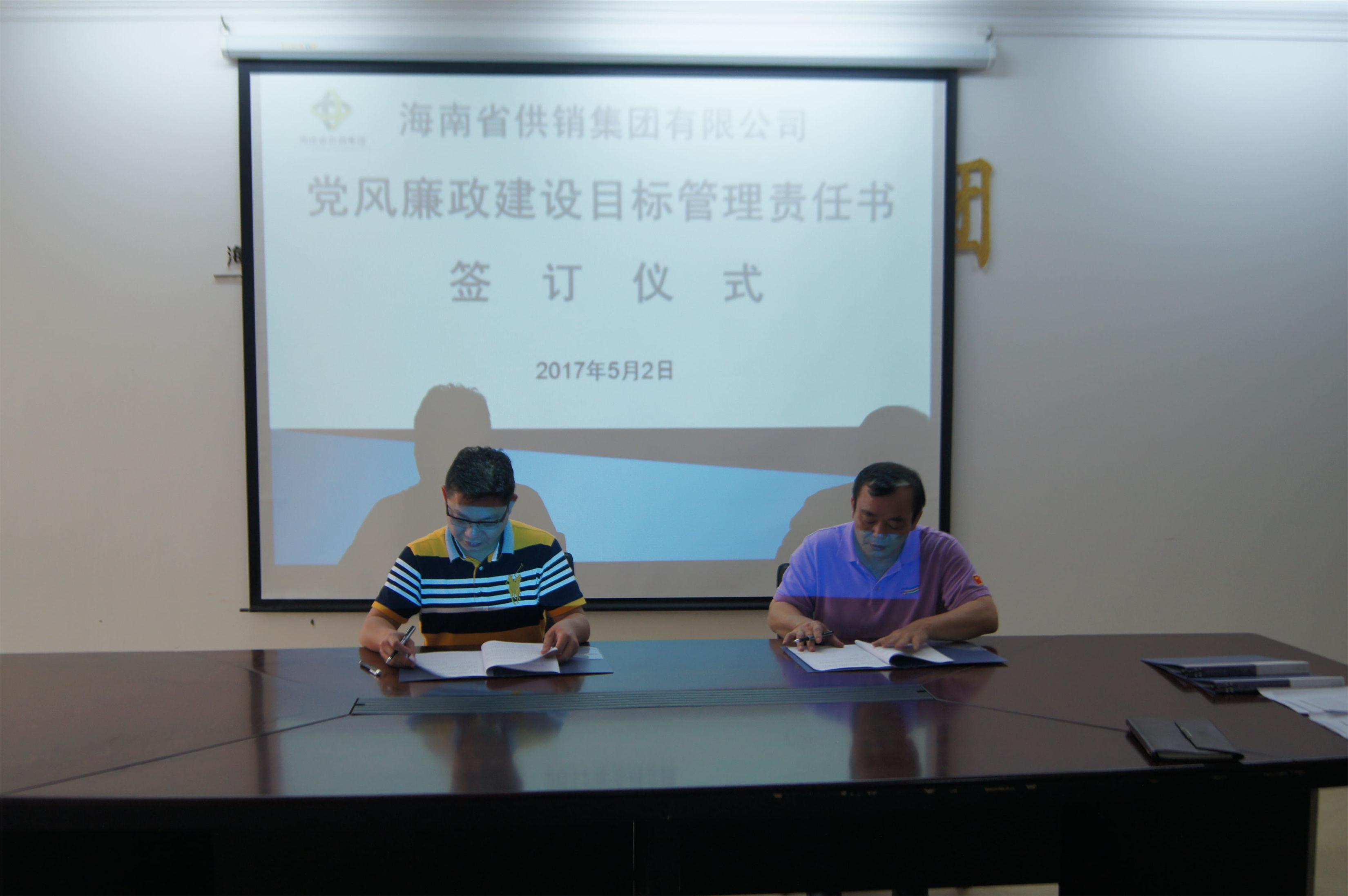 ☉加強(qiáng)黨風(fēng)廉政建設(shè) 強(qiáng)化落實(shí)“一崗雙責(zé)” 為貫徹落實(shí)中共中央《關(guān)于實(shí)行黨風(fēng)廉政建設(shè)責(zé)任制的規(guī)定》和省社黨委2017年黨風(fēng)廉政工作的要求,2017年5月2日下午,海南省供銷集團(tuán)有限公司在公司會議室舉行了2017年黨風(fēng)廉政建設(shè)目標(biāo)管理責(zé)任書簽約儀式。海南省供銷集團(tuán)有限公司總經(jīng)理余漢忠分別與分管領(lǐng)導(dǎo) 日期:2017.05.04 點(diǎn)擊:303