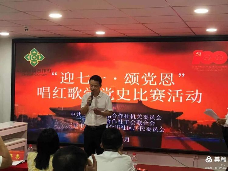 為慶祝中國共產黨成立100周年,回顧黨的歷史、踐行初心使命,推動黨史學習教育走深走實,6月24日下午,由三亞市供銷合作社機關黨委、市供銷合作社工會聯合會與三亞市群眾街社區,共同開展“迎七一 •頌黨恩”唱紅歌學黨史主題黨日活動。參加這次活動的有市供銷合作社黨組下屬各支部、各基層供銷社和群眾街黨員干部職工。