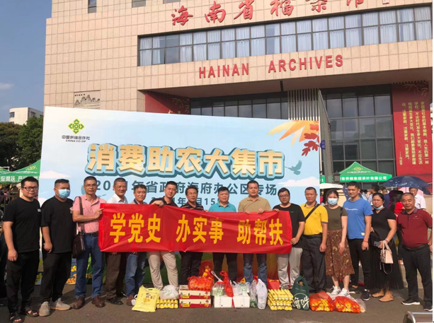 2021年4月15日省供銷集團(tuán)黨支部開(kāi)展黨員“學(xué)黨史,辦實(shí)事,助幫扶”主題黨日活動(dòng),黨支部書記李紅衛(wèi)帶領(lǐng)黨員干部職工16人參加省供銷社聯(lián)合省扶貧辦、南海網(wǎng)、海南愛(ài)心扶貧網(wǎng)在省政府海府辦公區(qū)(省檔案館門前)舉辦“消費(fèi)助農(nóng)大集市”專場(chǎng)活動(dòng)現(xiàn)場(chǎng)采購(gòu),現(xiàn)場(chǎng)黨員干部職工購(gòu)買芒果、甜瓜、茶葉、豬肉、雞蛋、粽子、食用油等農(nóng)產(chǎn)品1300多元。
