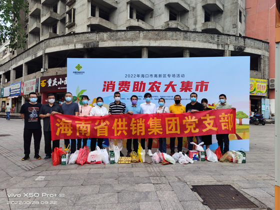 2022年10月28日上午,省供銷集團(tuán)黨支部開展“消費(fèi)助農(nóng)”主題黨日活動(dòng),省供銷集團(tuán)黨支部組織黨員干部職工參加海南省供銷合作聯(lián)社聯(lián)合海口市供銷合作社在海口高新區(qū)科技大道旁農(nóng)貿(mào)市場(chǎng)處舉辦的消費(fèi)助農(nóng)大集市活動(dòng)。省供銷集團(tuán)黨支部黨員干部職工一到消費(fèi)助農(nóng)大集市活動(dòng)現(xiàn)場(chǎng)就開始爭(zhēng)相購(gòu)買,活動(dòng)現(xiàn)場(chǎng)有大米、魚肉丸、牛肉干、豬肉、雞蛋、粽子、茶葉、水果、蔬菜等眾多農(nóng)副產(chǎn)品,他們用實(shí)際行動(dòng)為消費(fèi)助農(nóng)獻(xiàn)份愛心,現(xiàn)場(chǎng)購(gòu)買助農(nóng)產(chǎn)品共計(jì)2204.3元。