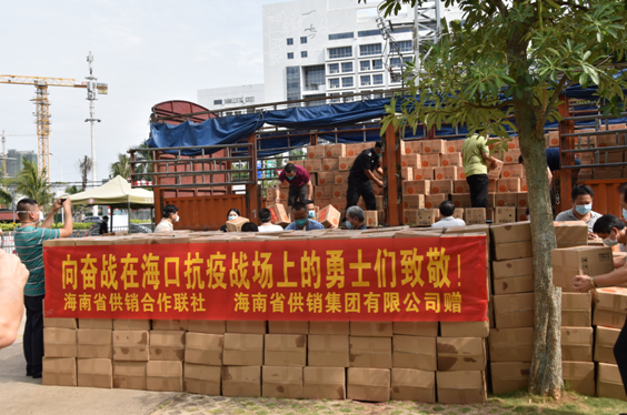 海南此次新冠疫情爆發以來,海南省供銷集團在海南省供銷合作聯社的組織帶領下,響應省委省政府防疫助農的號召,在疫情防控期間幫扶待銷農產品對接尋找銷售渠道。省供銷社和省供銷集團倡議黨員干部員工開展愛心捐贈,籌集到捐贈款95448元,用于采購儋州和三亞的待銷農產品香蕉以及配備八寶粥、牛奶餅干等防疫生活物資,捐贈給三亞、海口、儋州的抗疫機構,慰問一線的抗疫英雄。