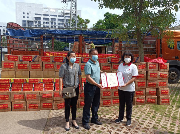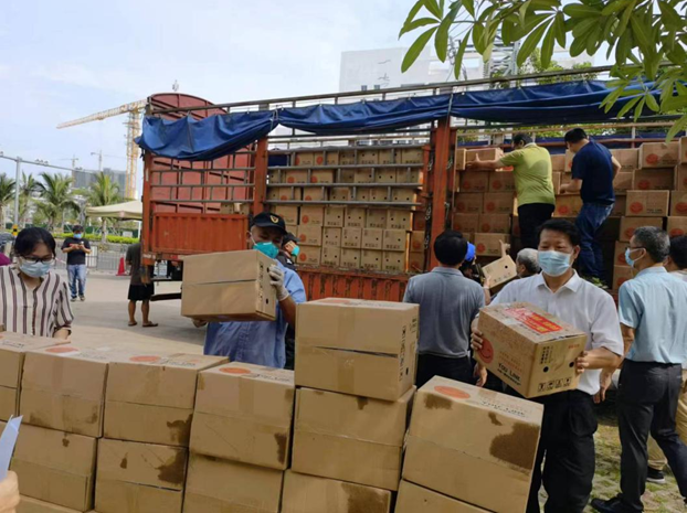 9月6日,海南省供銷合作聯社捐贈的4萬斤滯銷香蕉果品和生活物資一批“2022抗疫助農、互助共濟”“向奮戰在抗疫戰場上的勇士們致敬”,總價值9.6萬元,捐贈抗疫一線防疫物資抵達三亞、儋州、海口,這是省社機關、直屬企業黨支部黨員、干部、群眾及省供銷集團共同捐款,既體現了供銷社人優良本色,也體現了“消費幫扶”精神。此舉在一定程度上助力待銷農產品銷售,也能讓抗疫一線人員吃到新鮮的香蕉!當天,一箱箱載滿物資的車輛有序的停放,省供銷社的志愿者們迅速上前,齊心協力進行卸貨、分裝,一切井然有序。