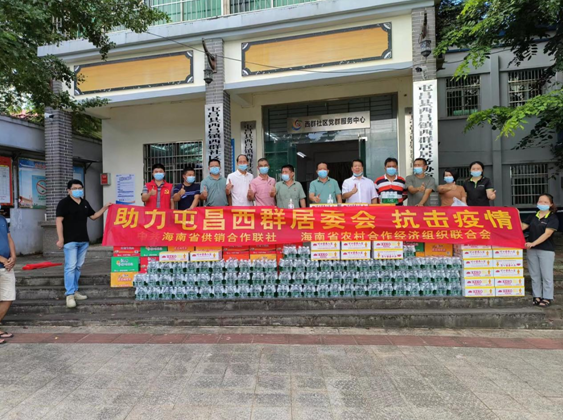 本次海南省供銷合作聯(lián)社、省供銷集團黨支部和省農(nóng)合聯(lián)共捐贈礦泉水80箱、八寶粥40箱、方便面50箱、消毒液20瓶及口罩1件等生活物資,價值6870元,以實際行動助力西昌村委會一線工作人員抗擊新冠疫情,為抗擊疫情獻(xiàn)出一份力量。西昌村委會書記現(xiàn)場接收了捐贈物資,并對省社、省供銷集團和省農(nóng)合聯(lián)送來的捐贈物資表示衷心感謝,該批物資保障一線工作人員生活需求,堅信在省社大力支持下,一線工作人員同心抗疫,共克時艱,一定打贏這場疫情阻擊戰(zhàn)。