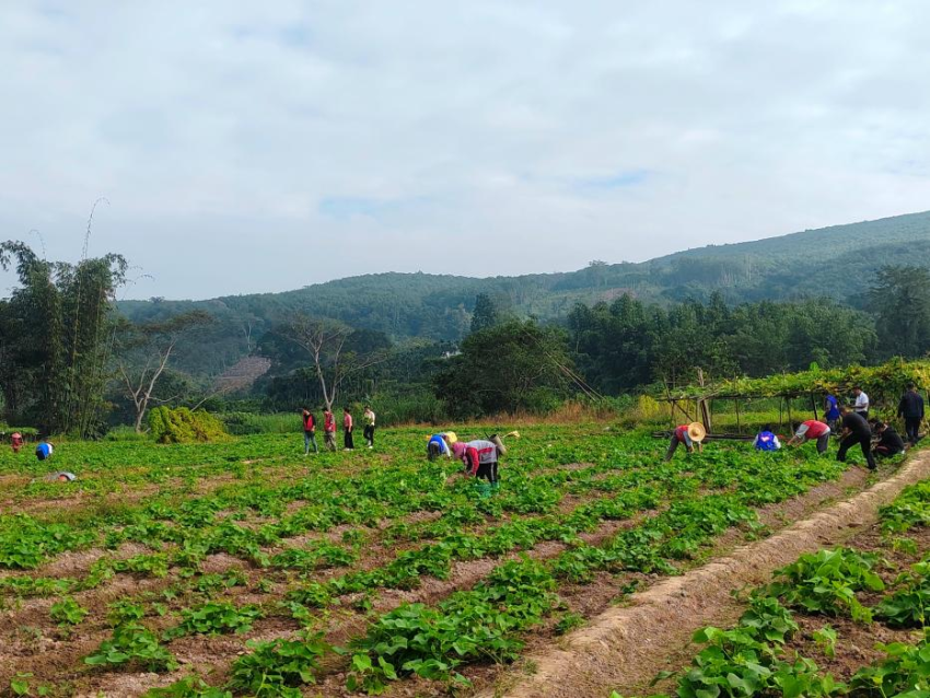 黨員干部、青年志愿者到菜地幫助村民們采摘蔬菜