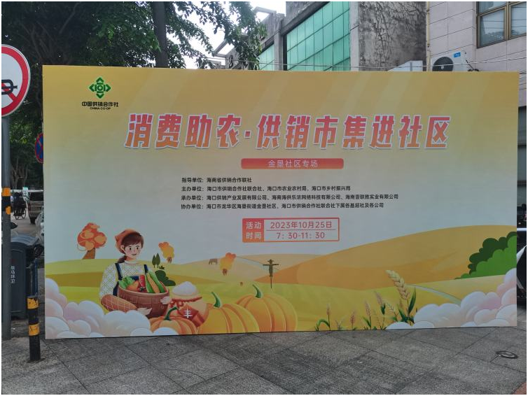 根據(jù)《海南省供銷合作社聯(lián)社關(guān)于持續(xù)做好2023年消費(fèi)幫扶和農(nóng)產(chǎn)品運(yùn)銷工作的通知》(瓊供﹝2023﹞6號)的通知要求,為貫徹落實(shí)今年中央一號文件、省第八次黨代會和省委農(nóng)村工作會議精神,引導(dǎo)社會各界和各類市場主體參與消費(fèi)幫扶工作,豐富消費(fèi)助農(nóng)新業(yè)態(tài),拓展消費(fèi)助農(nóng)新模式,2023年10月25日,由省供銷合作聯(lián)社指導(dǎo),海口市供銷合作社聯(lián)合社、海口市農(nóng)業(yè)農(nóng)村局和海口市鄉(xiāng)村振興局主辦,海口供銷產(chǎn)業(yè)發(fā)展有限、海南海供樂農(nóng)網(wǎng)絡(luò)科技有限公司、海南壹聯(lián)盛實(shí)業(yè)有限公司承辦的“消費(fèi)助農(nóng)·供銷市集”進(jìn)社區(qū)活動—金墾社區(qū)專場開市啦!