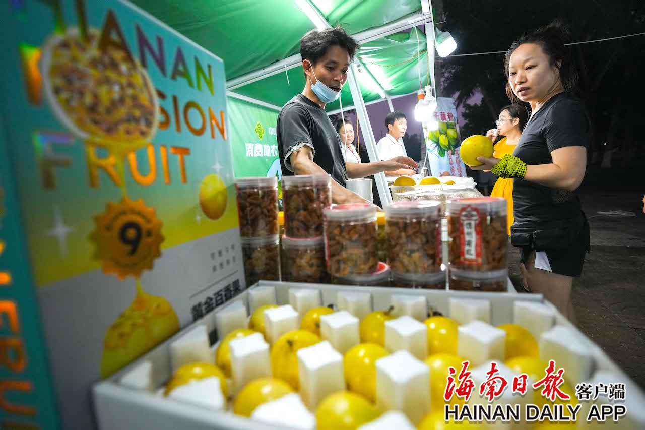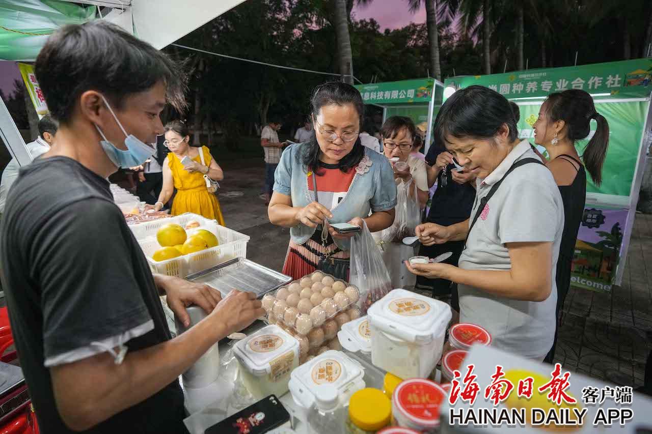 8月31日晚,在海口市萬綠園共同舉辦常態化消費助農·供銷市集活動現場,海南各個市縣特色的農產品,吸引市民游客前來選購。海南日報記者 王程龍 攝