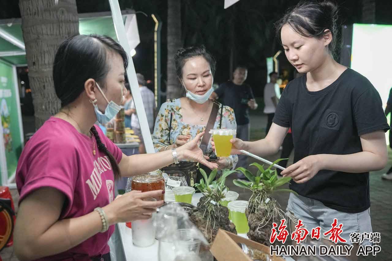 8月31日晚,在海口市萬綠園共同舉辦常態化消費助農·供銷市集活動現場,20個幫扶產品銷售攤位上,百余種農副產品,吸引眾多市民游客前來選購。海南日報記者 王程龍 攝
