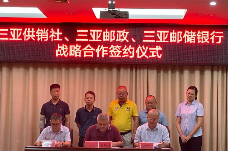 2023年8月1日,三亞供銷合作社和郵政集團三亞分公司、郵儲銀行三亞分行舉行戰略合作協議簽署儀式,雙方堅持優勢互補、資源共享、市場運作、互惠共贏的合作原則,就快遞進村、縣域物流倉配體系建設、站點賦能建設、渠道共用、金融服務、大數據建設等等方面達成戰略合作約定,推動農村快遞網絡和供銷合作社現代商貿流通服務網絡共建共用,實現全域流通服務網絡建設提升行動提檔升級。