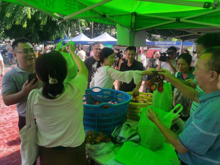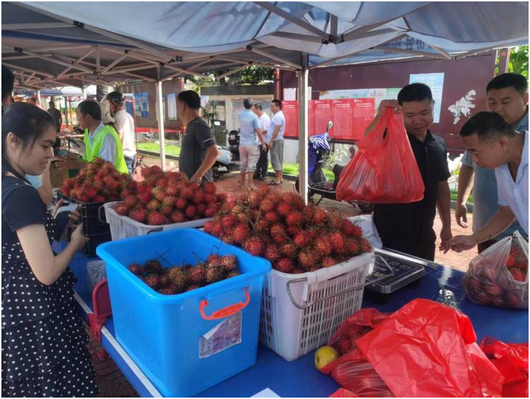 經過周密的部署和精心的組織,當天共有2家農民合作社,9名脫貧戶和9名農戶組織了六弓鵝、小母雞、黃牛肉、羊肉、紅毛丹、百香果、龍眼等19種特色農產品參加現場的銷售。