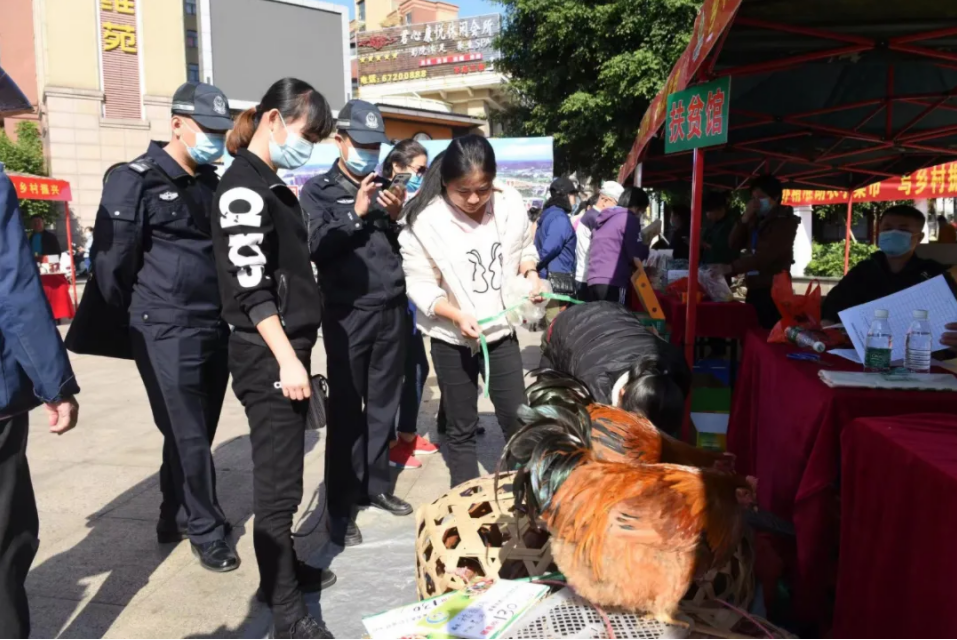 記者在現場看到,農副產品種類豐富,有橋頭海產品、土雞蛋、水果等,各類農副產品琳瑯滿目,前來參觀咨詢購買的人絡繹不絕。