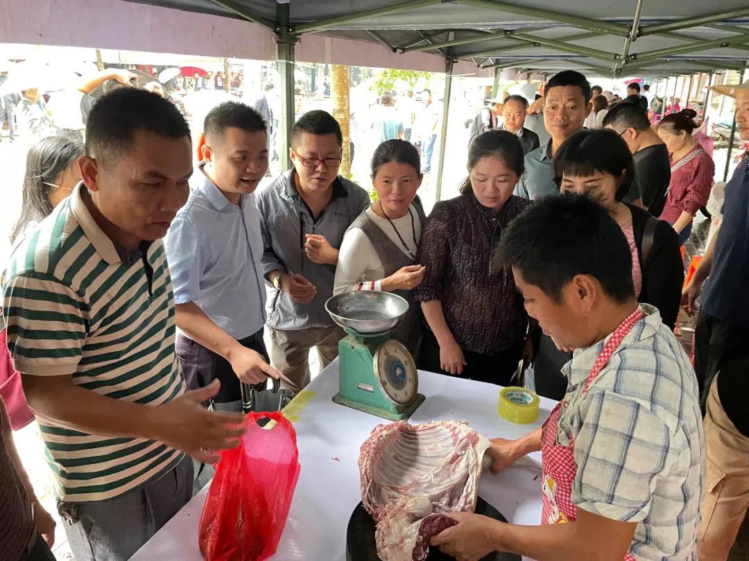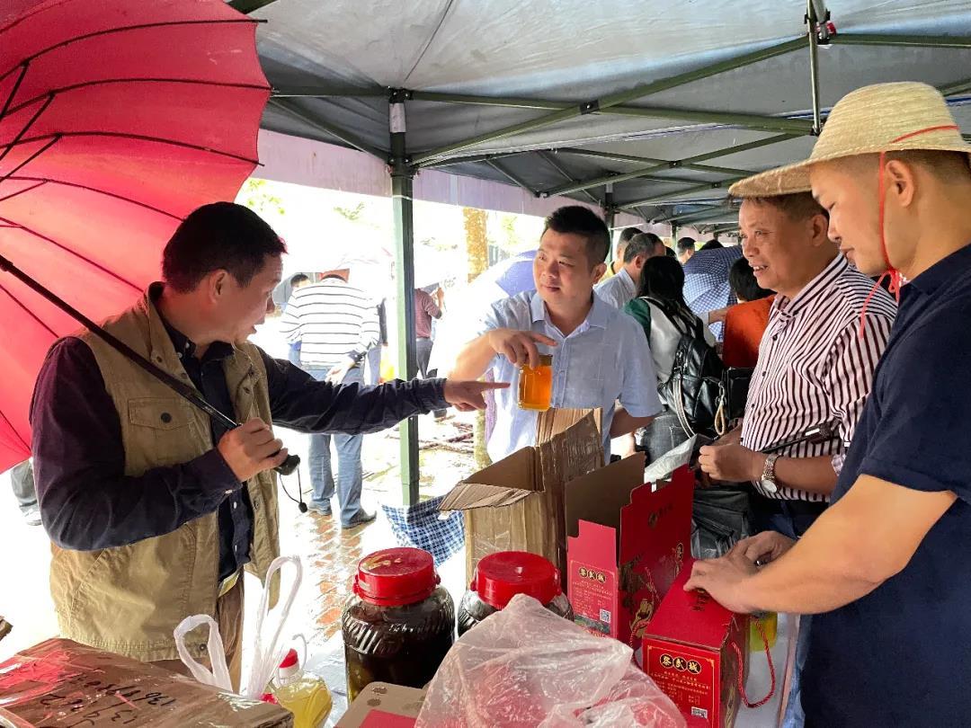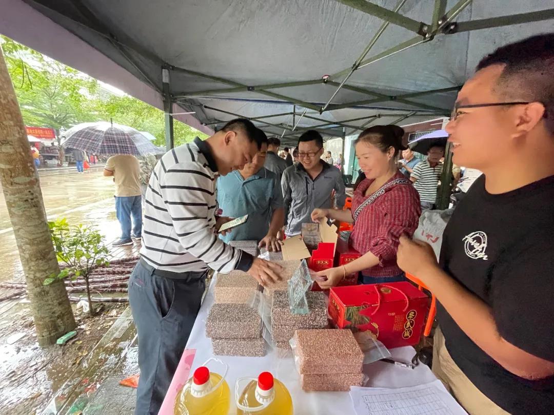當天上午下著大雨,但絲毫不減群眾熱情,市民群眾流連在各個攤位前細心選購。“農戶拿出來賣的東西都是純天然的,原汁原味非常好吃。”東興居居民黃阿姨購物欲滿滿,手上拎著牛肉、羊肉、咸魚干等幾大袋食物,她說今天特意起了個大早前來趕集,希望以后多在家門口舉辦這類助農活動。