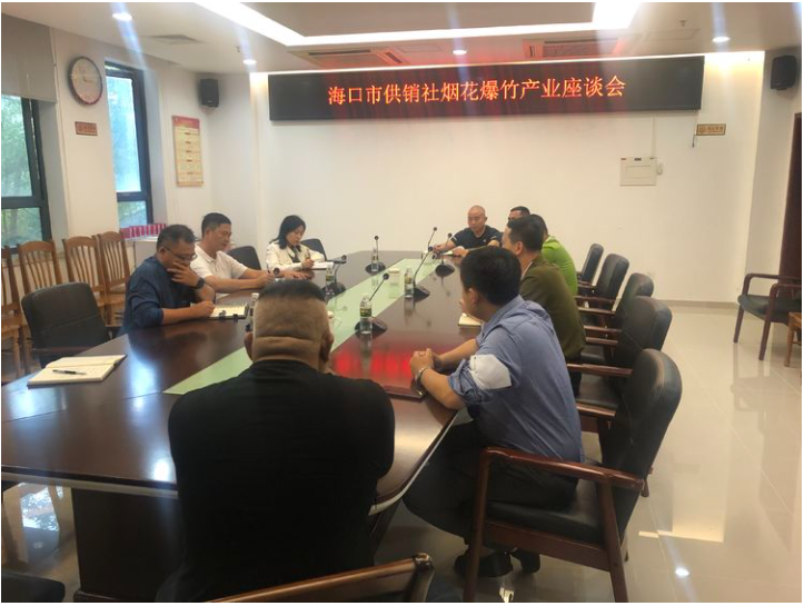 10月19日下午,海口市供銷社黨組書記、主任林山主持召開煙花爆竹產業座談會,海口市供銷社行業管理科科長符穎、辦公室主任黃小慶、辦公室副主任宋倩倩、瓊山土產日雜公司、大致坡供銷社、譚文供銷社、舊州供銷社、遵譚供銷社、宏利達煙花爆竹有限公司有關人員參會。