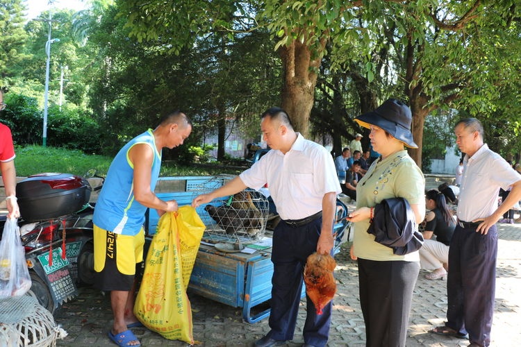 集市現(xiàn)場熱鬧非凡,現(xiàn)場設(shè)有20多個攤位,多個攤位,既有肉禽蛋類,又有新鮮蔬果。加茂鎮(zhèn)及附近鄉(xiāng)鎮(zhèn)的農(nóng)民群眾及合作社帶來了本地豬肉、羊肉、芭蕉、紅毛丹以及山蘭米酒等農(nóng)產(chǎn)品極受歡迎。其中,肉類產(chǎn)品很受消費者喜愛。加茂鎮(zhèn)共村巾幗養(yǎng)殖專業(yè)合作社負責人黃平介紹:早上殺了兩頭羊帶到集市,八點鐘到,不到半小時羊肉就賣完了。