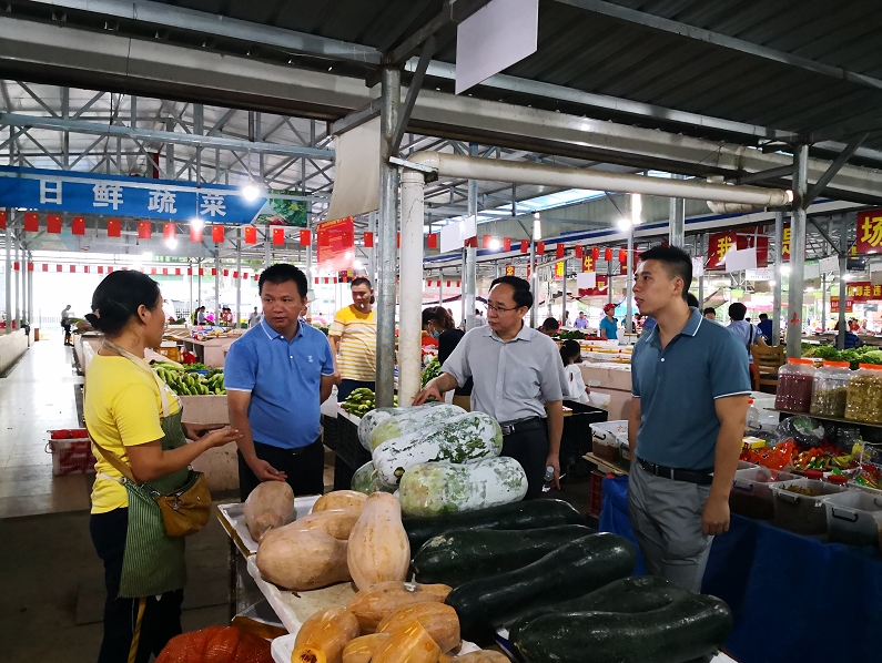 在五指山調研期間,調研組走訪了五指山市第一農貿市場、第三農貿市場、河北農貿市場和農產品批發市場,同農貿市場經營商戶和市場運營方進行了溝通懇談。詳細了解了五指山市社農產品運銷實體組建情況以及承擔當地“菜籃子”保供穩價工作開展情況。