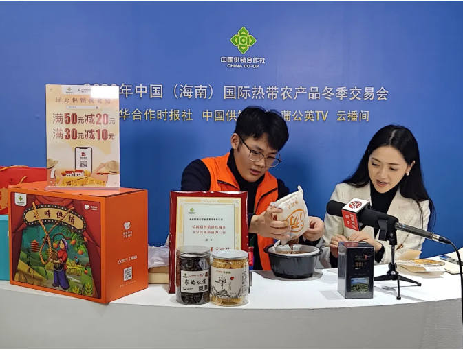 為了打通線上線下,擴(kuò)大展銷效果,供銷館里特別搭建了“冬交會云播間”,10多個省市供銷合作社攜農(nóng)產(chǎn)品企業(yè)走進(jìn)直播間,推介產(chǎn)品、介紹經(jīng)驗(yàn),吸引了近百萬人次收看。北京新合作連鎖超市有限公司綜合部總經(jīng)理王薇說:“現(xiàn)場情景化直播是擴(kuò)大農(nóng)產(chǎn)品品牌影響力很好的一種方式,我們這次通過蒲公英TV直播間展示了來自貧困地區(qū)的10多種優(yōu)質(zhì)農(nóng)產(chǎn)品,歡迎大家和我們邊吃邊聊。”