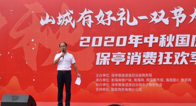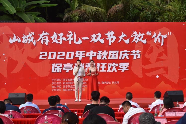 山城有好禮-雙節大放‘價’,9月28日,保亭縣在麗都莊園扶貧集市現場啟動2020年中秋國慶節消費狂歡季活動,掀起第二場“消費扶貧月 愛心扶貧大集市”熱潮。
