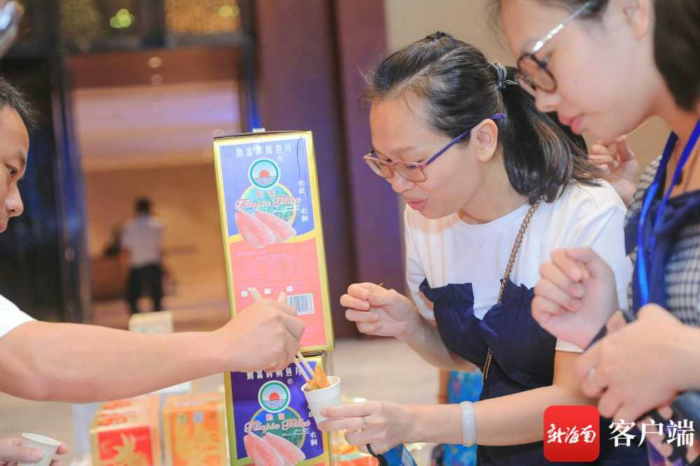 當(dāng)天,勤富食品展臺上帶來了魚皮和鯛魚片的試吃,工作人員把廚具帶到展臺,現(xiàn)場煎魚片,香味四溢,吸引了眾多嘉賓的駐足。“魚片好嫩,怎么賣的?”“這魚皮爽滑脆彈,真的太好吃了,給我來一包!”工作人員一邊忙著給顧客打包,一邊引導(dǎo)顧客掃碼付款,生意好不熱鬧。