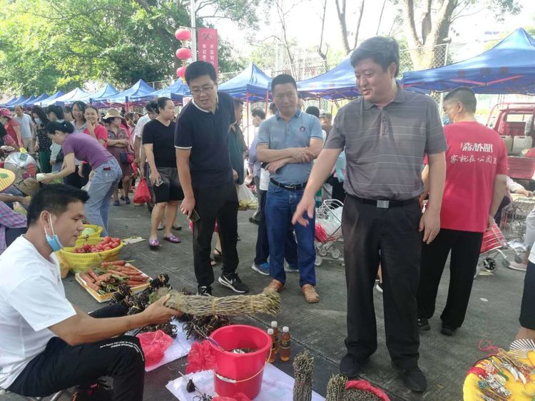 9月26日上午,全國消費扶貧月愛心扶貧大集市五指山專場活動繼續在我市通什大橋底下舉行,這是在省供銷社指導下的全國消費扶貧月九月份我市第四場專場活動,也是我市2020年下半年第十二場愛心扶貧周六趕集日。來自全市七個鄉鎮的貧困戶和合作社參與產品銷售,各單位干部職工、各幫扶責任人和社會各界愛心人士積極參與愛心扶貧消費,場面火熱!據不完全統計現場銷售共計92873元,其中通什鎮31008元、南圣鎮25175元、番陽鎮8685元、毛陽鎮2297元、暢好鄉15005元、毛道鄉6553元、水滿鄉4150元。市委書記宋少華和市長陳振聰等市領導親自到現場指導和帶頭參加愛心扶貧消費!少華書記強調愛心扶貧趕集日目前已經形成品牌效應,但發展中仍存在不少問題,要求市供銷社、市扶貧辦、各鄉鎮、市綜合執法局和市市場監督管理局等消費扶貧工作組成員單位要按照省委市委的決策部署和《五指山市2020年下半年愛心扶貧趕集日方案》、《五指山市全國消費扶貧月活動方案》的要求,嚴把消費扶貧市場的入口關,確保貧困戶區域只有貧困戶和帶貧合作社在里面進行銷售;監督產品質量和銷售價格,推動產品質優價美!加強對愛心扶貧趕集日的綜合治理,提升趕集日的購物環境,使趕集日活動成為廣大市民和游客休閑購物的好去處!以更好的面貌迎接即將在我市開始的脫貧攻堅大比武活動。陳振聰市長對辦好趕集日活動提出要求,要求消費扶貧工作組成員單位要按照市委市政府決策部署落實好我市《下半年趕集日活動方案》和《全國消費扶貧月活動方案》的要求,落實好消費扶貧的各項措施!迎接脫貧攻堅大比武活動!