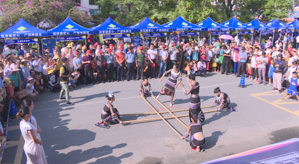 集市上,主辦方還設置趣味活動區,舉行跳竹竿舞、大米挑挑挑、黃豆大作戰、玉米剝剝樂等活動,將集市的活動氛圍推向高潮。