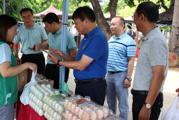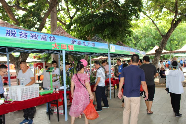 9月12日上午8.30以消費扶貧月啟動儀式暨“愛心扶貧大集市”為主題的愛心大集市活動在市文化活動廣場舉行,來自全市10個鄉鎮、1個華僑經濟區的36戶貧困戶及各鄉鎮的專業合作社和龍頭企業(帶貧益貧組織)生產的各類特色農產品參與現場展銷。當地特色農產品五腳豬、順溜雞、云天農場鴿、黑米、火龍果、沙地地瓜、蜂蜜、閹雞、綠殼雞蛋等等眾多農產品,16個展銷攤位整齊擺滿了廣大群眾喜愛的30多種本地農產品,不僅品種豐富多樣,而且物美價廉。同時,選購的方式也是靈活多樣,群眾既可以現場購買,也可以用手機登錄“東方市農產品直營店”小程序認購?;顒赢斕?,市委副書記、市長張長豐出席活動并作講話。市人大常委會副主任曾玉雄,副市長符高波,市政協副主席李海紅參加活動。市政府領導班子成員帶頭參與現場認購活動,市直機關、企事業單位等干部職工踴躍參與認購,活動現場也吸引了當地群眾紛紛爭相購買。