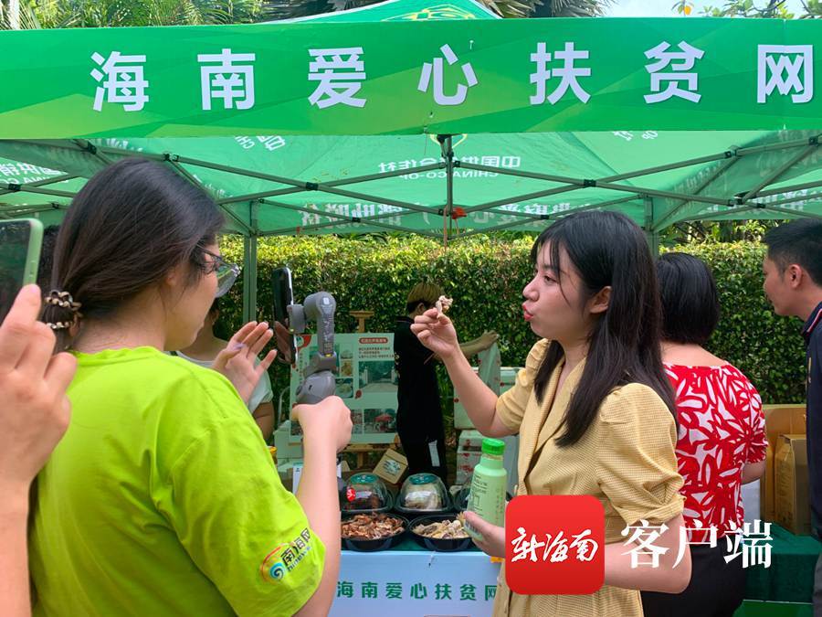海南愛(ài)心扶貧大集市設(shè)置專(zhuān)門(mén)的攤點(diǎn),推介全生物降解塑料制品。陳奕衡 攝