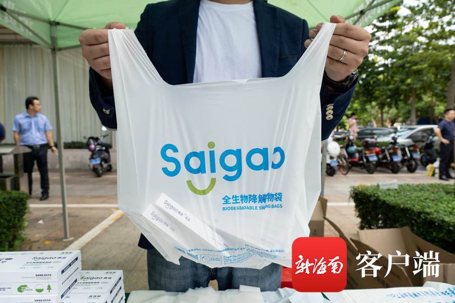 全生物降解的購(gòu)物袋、快遞包裹袋、垃圾袋、一次性餐盒……多款全生物降解塑料制品出現(xiàn)在海南賽高新材料有限公司的攤點(diǎn)上,吸引了人們的注意。