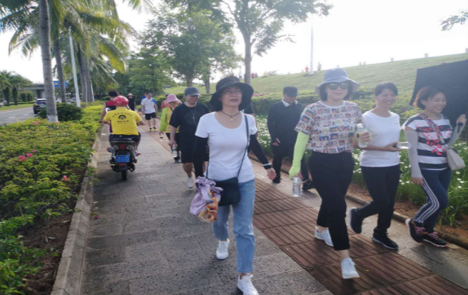 干部職工在海南廣場集合,機關黨委書記蔡超做動員講話。隨著一聲令下,在省社領導的帶領下,全體干部職工迎著早晨升起的太陽,沿南渡江西岸江堤行進1小時有余。隊伍整齊有序,精神振奮。全體隊員克服天氣炎熱,烈日當頭的不良因素,服從命令,聽從指揮,斗志昂揚,步伐堅定,彰顯了省社干部職工良好的精神風貌。