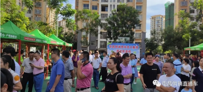 8月19日上午,屯昌縣供銷合作聯社、屯昌縣扶貧辦、屯昌縣農業農村局、屯城鎮黨委和政府聯合共同舉辦的屯昌縣消費扶貧大集市進社區活動在屯昌縣吉安小區拉開序幕,開展“扶貧集市進社區”活動是屯昌縣消費扶貧工作的重要組成部分,將成為貧困戶農產品銷售的重要渠道之一,讓社區成為匯聚愛心的重要平臺,加快貧困戶脫貧致富的步伐。