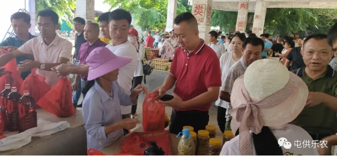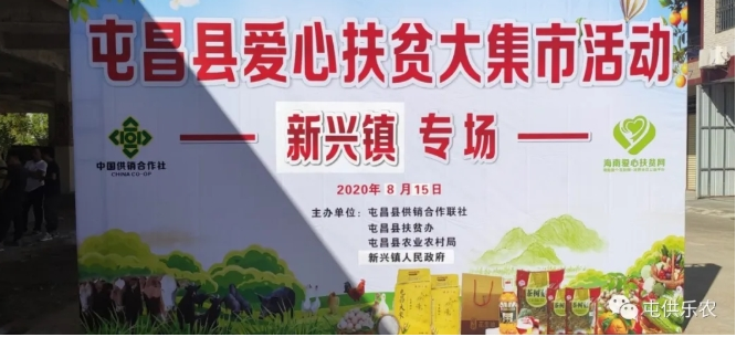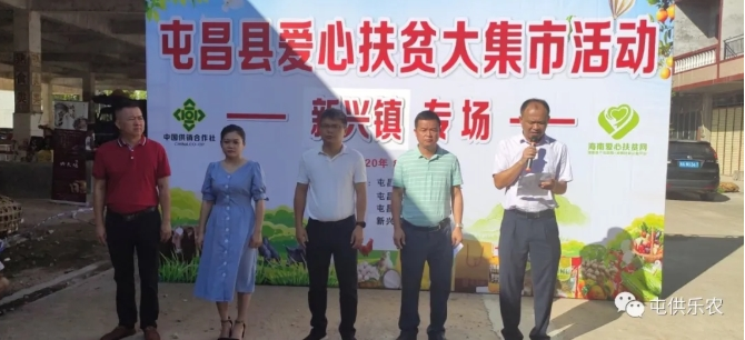 8月15日上午,由屯昌縣供銷合作聯(lián)社、縣扶貧辦、縣農(nóng)業(yè)農(nóng)村局、新興鎮(zhèn)黨委和政府聯(lián)合共同舉辦的屯昌縣“愛心扶貧大集市”新興鎮(zhèn)專場活動隆重開市。上午8點半舉行開幕儀式,新興鎮(zhèn)黨委書記陳柏全、新興鎮(zhèn)人大主席王明昊、縣供銷合作聯(lián)社主任符文雄、新興鎮(zhèn)黨委副書記、鎮(zhèn)長龐新宇、縣農(nóng)業(yè)農(nóng)村局潘夢怡副局長出席開幕儀式,新興鎮(zhèn)黨委副書記、鎮(zhèn)長龐新宇作致辭講話。各“雙聯(lián)雙扶”單位幫扶責(zé)任人和社會各界愛心人士積極參與認購!通過“以購代捐”“以買代幫”等方式促進全鎮(zhèn)扶貧農(nóng)產(chǎn)品銷售,助力我縣打贏脫貧攻堅戰(zhàn)。