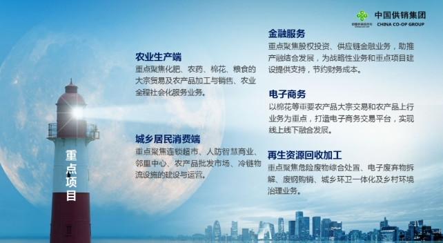 在化肥、農藥、種子等農資研發、生產、流通、服務,棉花資源掌控及相關相近產品經營、棉花倉儲流通、棉機制造,再生資源回收、加工、綜合利用,日用消費品、農產品經營,農產品批發市場建設、運營等領域,供銷集團經營服務規模和實力居于全國行業領軍地位;在電子商務、農村金融服務、冷鏈物流以及糧食收儲等領域,供銷集團經營服務規模和實力快速提升,后發優勢凸顯,是服務國家宏觀調控和惠農政策的重要力量,是中華全國供銷合作總社搞活農村流通、服務“三農”、引領全系統企業發展的重要抓手。