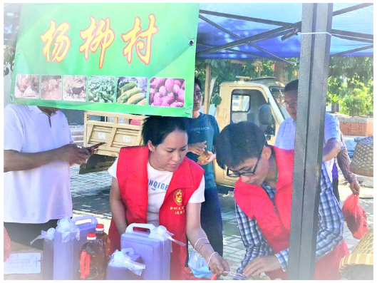 昌化鎮政府、縣供銷社干部和新時代文明實踐站志愿者為貧困戶做農產品銷售服務