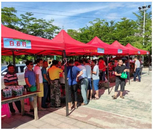 “本地雞,煲湯肉質(zhì)鮮美,一碗下去美容又養(yǎng)顏……”在烏烈鎮(zhèn)消費(fèi)扶貧“春風(fēng)大行動(dòng)、愛心扶貧大集市”活動(dòng)現(xiàn)場(chǎng),人頭攢動(dòng),叫賣聲不絕于耳。貧困戶們帶著自家種養(yǎng)的農(nóng)產(chǎn)品和精心制作的手工藝品到現(xiàn)場(chǎng)售賣,不僅有雞、鵝等家禽,還有峨溝香豆、西瓜、百香果等熱帶水果,更有烏烈羊和白石黑米等琳瑯滿目的特色產(chǎn)品,令人眼花繚亂、目不暇接。何順勁主任一行仔細(xì)了解了每個(gè)攤位的銷售情況,與參加活動(dòng)的貧困戶和扶貧企業(yè)親切交談,鼓勵(lì)他們積極發(fā)展產(chǎn)業(yè),切實(shí)提高收入,并帶頭購(gòu)買了一批特色產(chǎn)品。