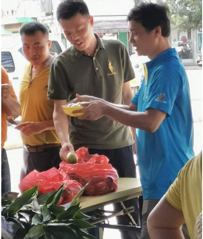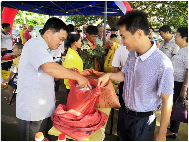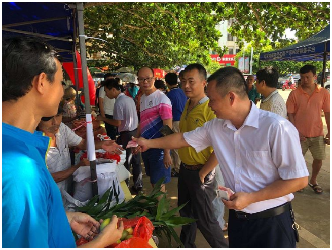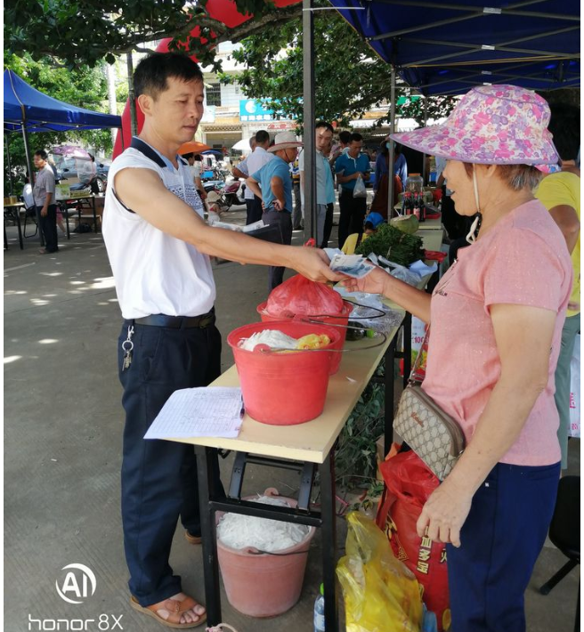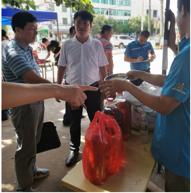 縣人大副主任、鎮脫貧攻堅大隊長吳清雄認真了解產品銷售情況并帶頭購買貧困戶所售農副產品