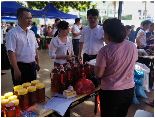 活動現場,縣人大副主任、黃竹鎮脫貧攻堅大隊長吳清雄,縣政協副主席陳京華,縣政協秘書長梁定偉,縣供銷聯社副主任王先林等領導蒞臨活動現場指導開展工作。鎮政府全體干部職工、縣直機關聯系點單位全體幫扶責任人、鄉村振興駐村工作隊員、各村(居)支部書記、貧困戶以及社會愛心人士約300余人參與此次活動,并積極購買農產品。