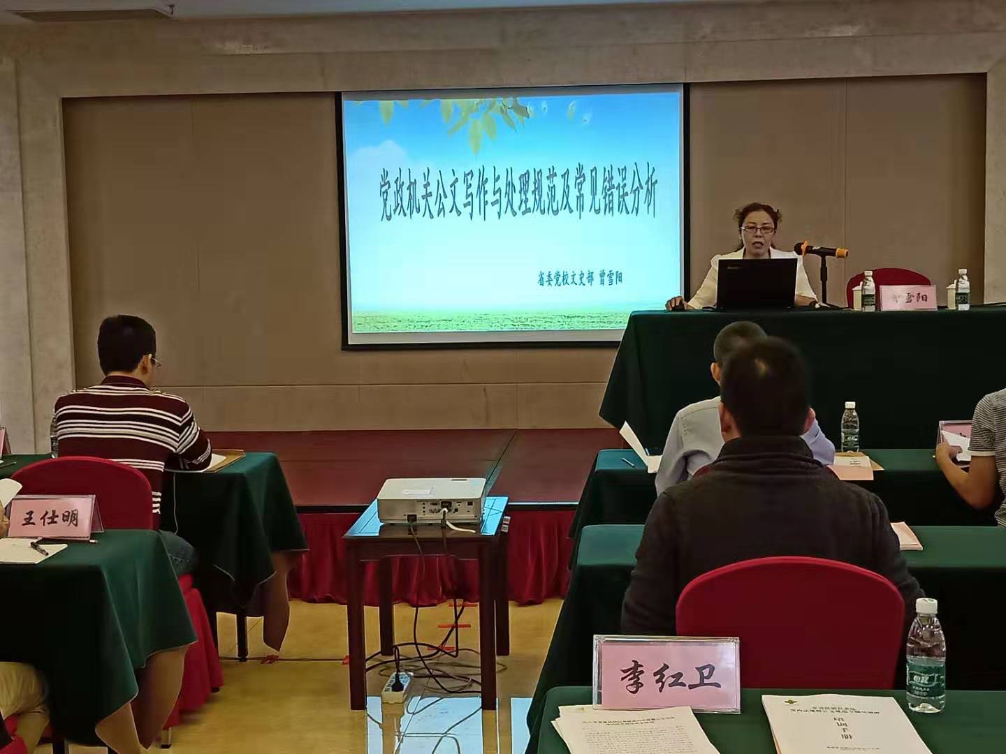 培訓(xùn)班邀請了省委黨委畢普云教授、曾雪陽、王偉、梁科等4位老師進(jìn)行授課。課程內(nèi)容緊緊圍繞黨的十九大和十九屆二中、三中全會精神,習(xí)近平總書記“4·13”重要講話和中央12號文件及其配套方案,省委七屆七次全會精神以及公文規(guī)范寫作等內(nèi)容開展。