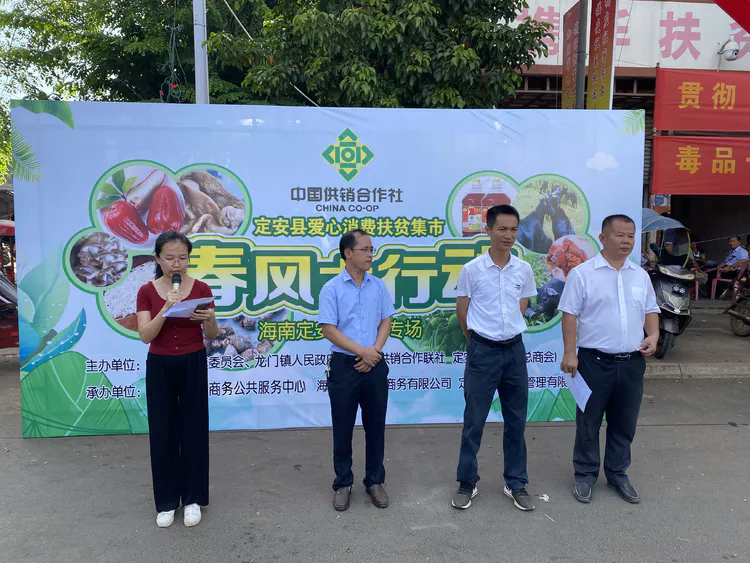 ☉龍門鎮舉辦“春風大行動”愛心消費扶貧活動 7月11日上午,龍門鎮在鎮墟農貿市場開展春風大行動愛心消費扶貧活動。龍門鎮全體干部職工、幫扶責任人及各村貧困戶共300余人參加此次活動。 上午9點整,活動舉行開幕儀式,中共龍門鎮委書記潘在河,定安縣供銷社副主任王先林,龍門鎮人民政府鎮長王上平以及 日期:2020.07.14 點擊:198