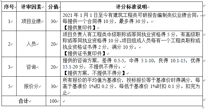 5. 比選本著公平、公正、科學、擇優的原則,對比選文件進行獨立評標打分,按比選成員分值算術計算出的數值即為參選人的得分,依據參選人得分多少確定其排名次序。