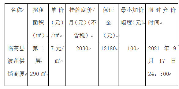 3、本項目采用自由報價的方式進行招租,意向競租方提交競租申請并被確認有效,競租成交后應簽署競價確認書,履行本公告規定的責任,按所報價格及本公告規定的條件和要求與招租方簽訂租賃合同并支付價款。