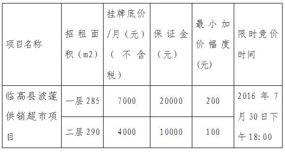 一、項(xiàng)目名稱 臨高縣波蓮供銷(xiāo)超市項(xiàng)目招租